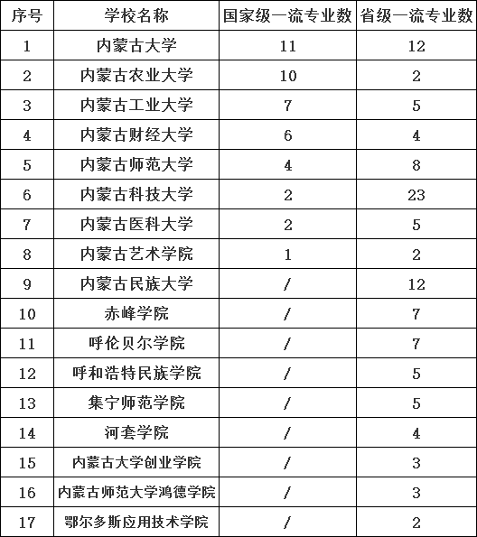 一、内蒙古一流本科专业建设高校名单(完整版)