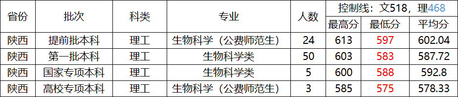 所以,可见陕西师范大学三种生物科学专业的学生,