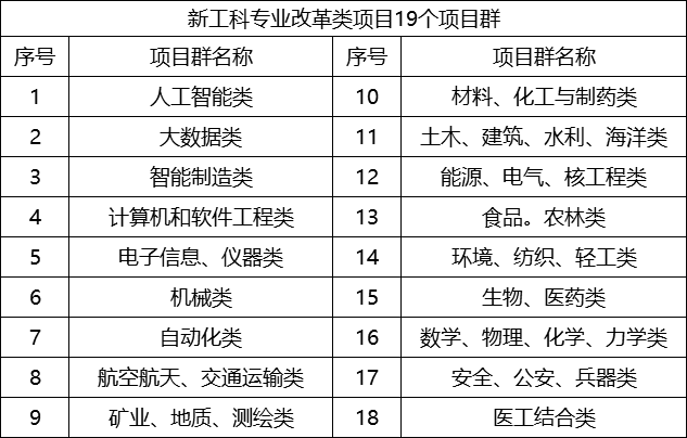 新工科专业囊括了19个专业类,分别是人工智能类、大数据类、智能制造类、计算机和软件工程类、电子信息及仪器类、机械类、自动化类等。