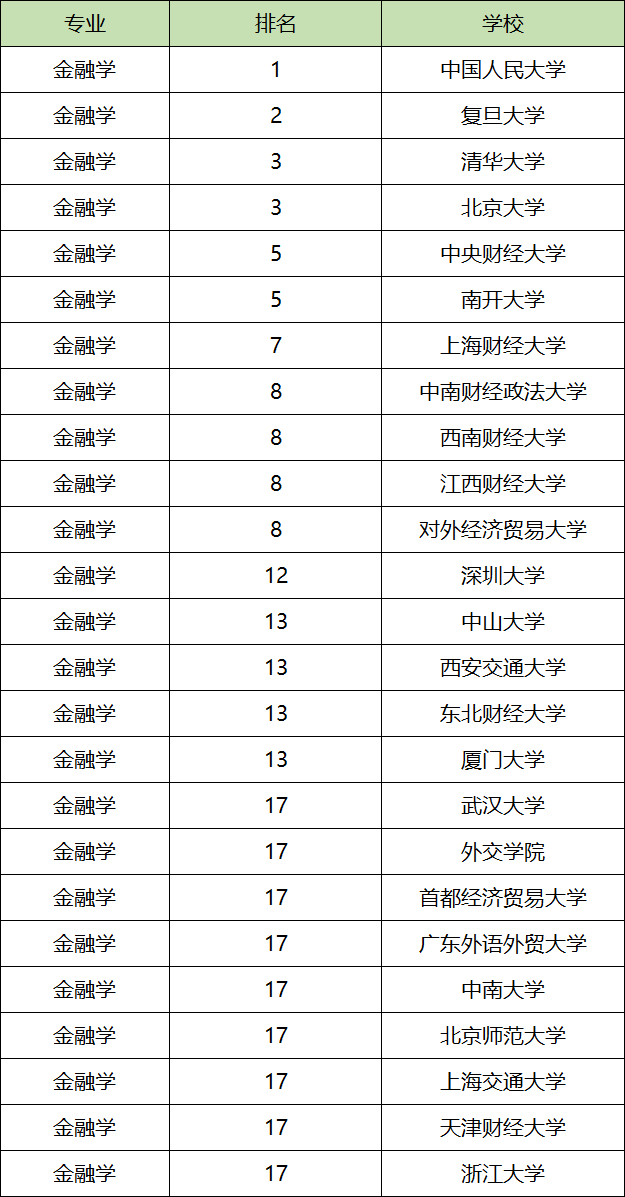 根据校友会2019中国金融学类一流专业排名榜单,以下学校金融专业排名如下: