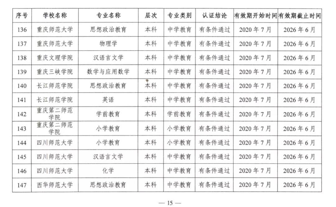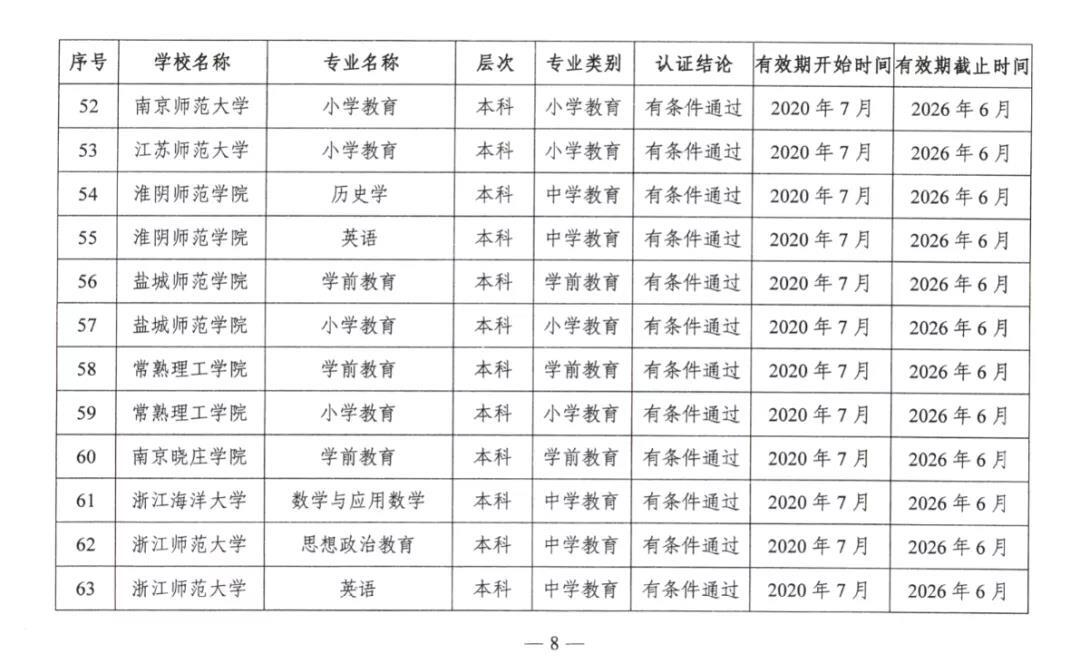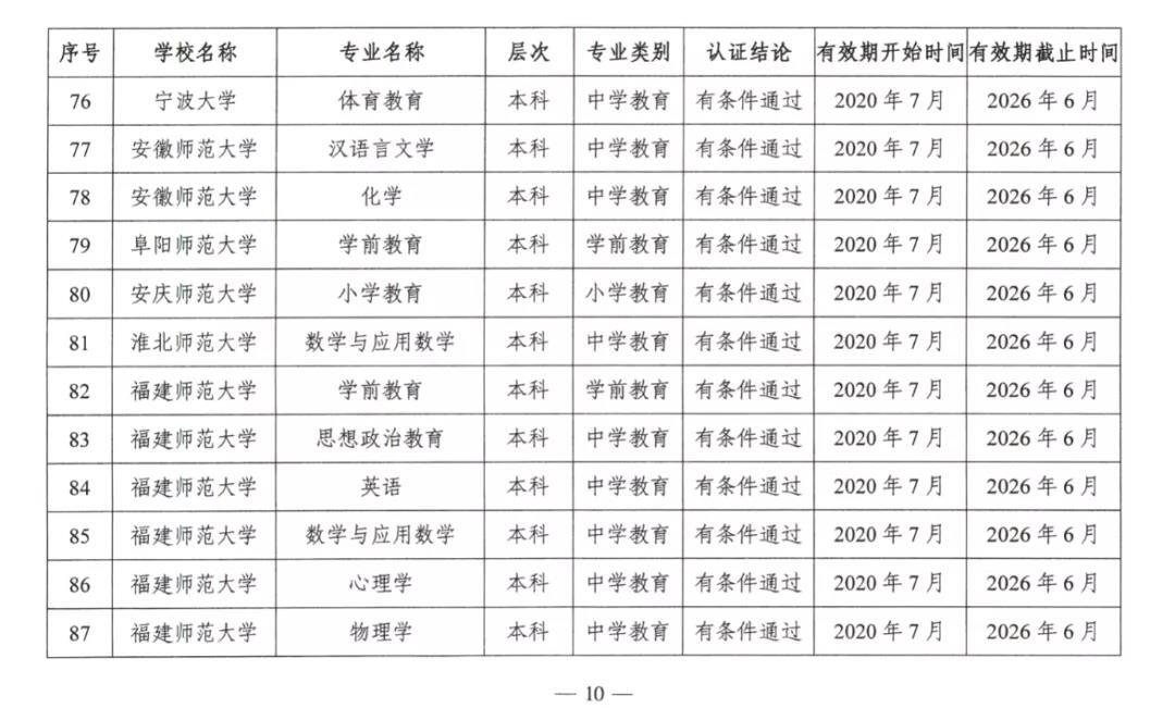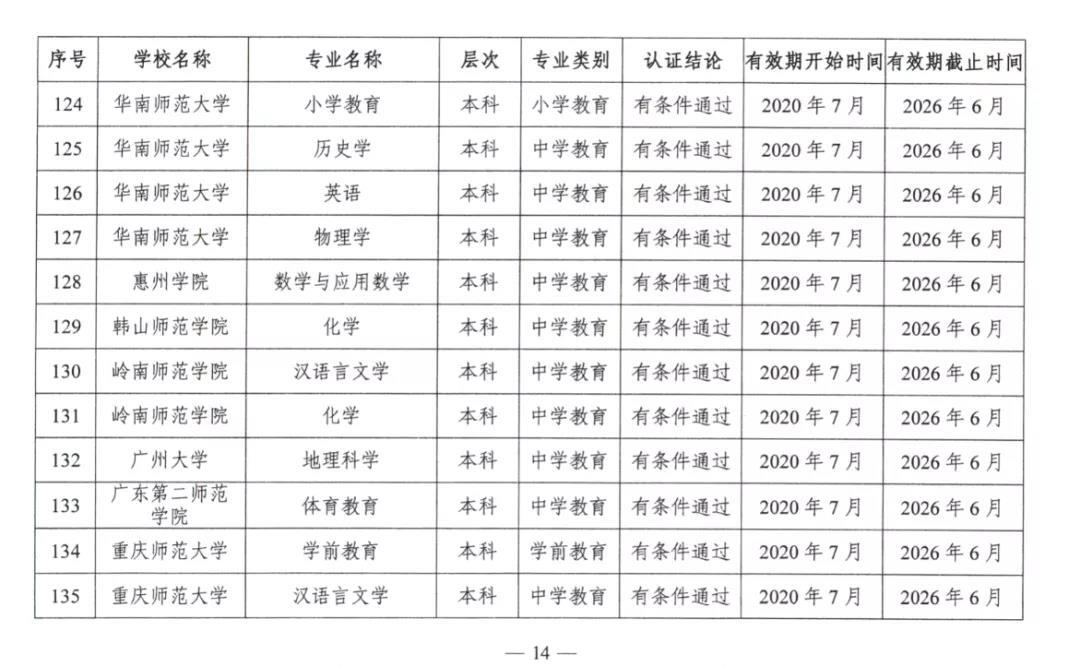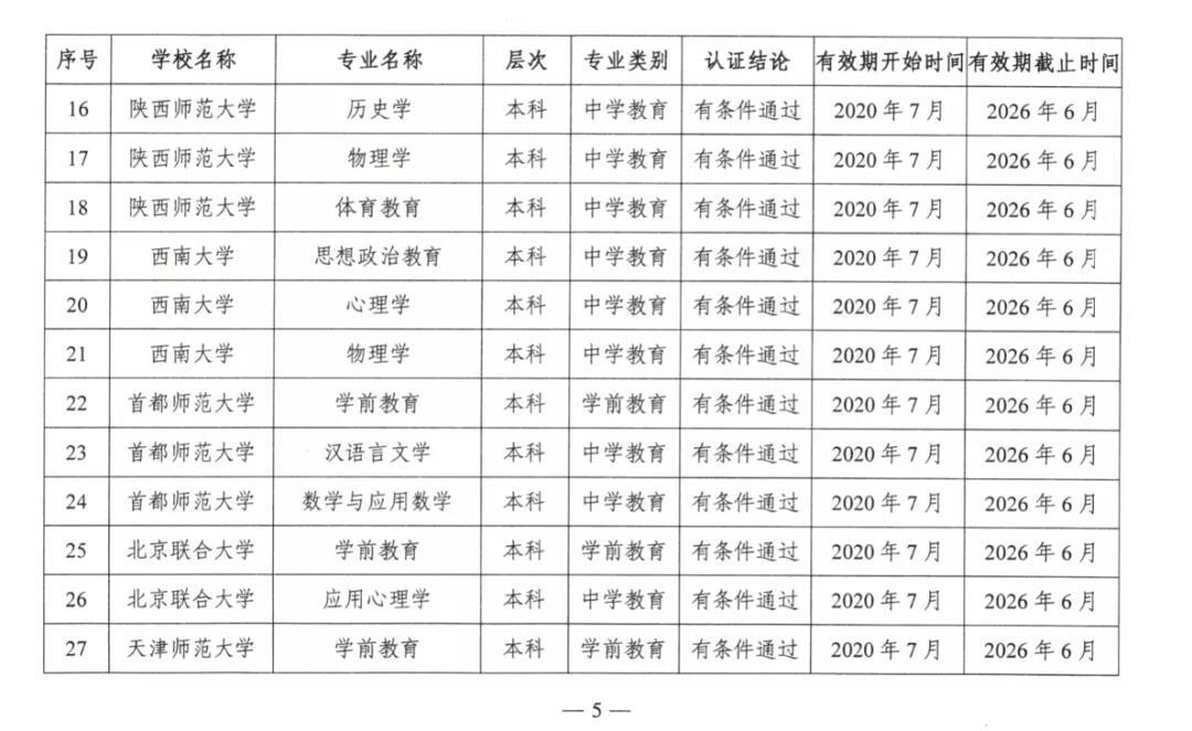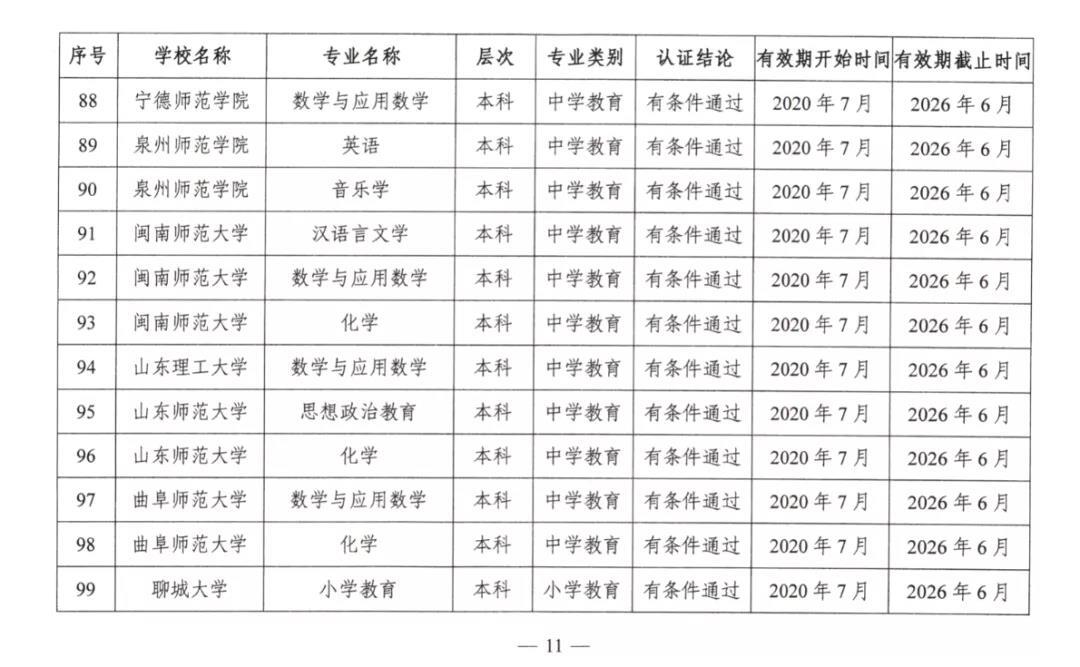 2020年7月17日,教育部公布2020年通过普通高等学校师范类专业认证的专业名单。