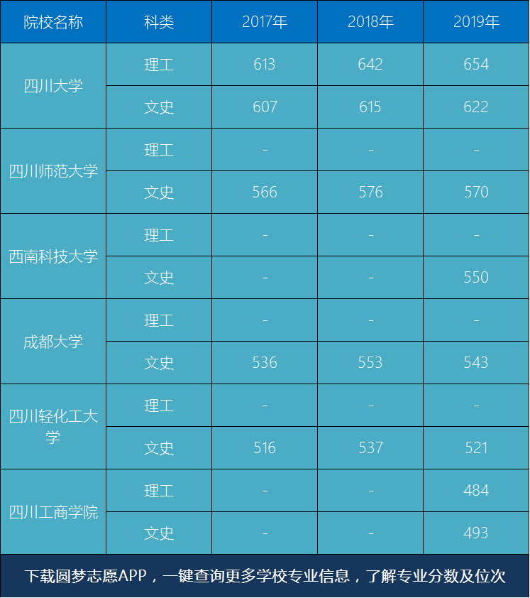 由于四川内开设有该专业的院校并不少,因此本文将按照排序的高中低,分别列出6所院校该专业2017年-2018年的分数线,详细如下: