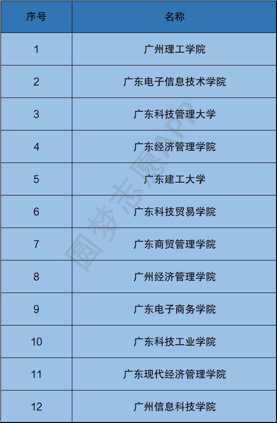 根据人民日报曝光的全国392所“野鸡大学”名单,可以得知广东省一共有12所野鸡大专,具体名单如下:
