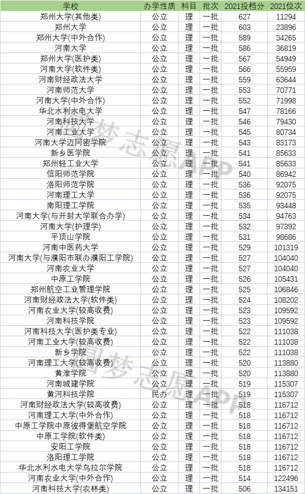 注:由于篇幅有限,本文为大家整理的是河南省一本大学2021年在省内理科录取分数线排名表,想了解更多省份一本大学排名及分数线的考生,可以。