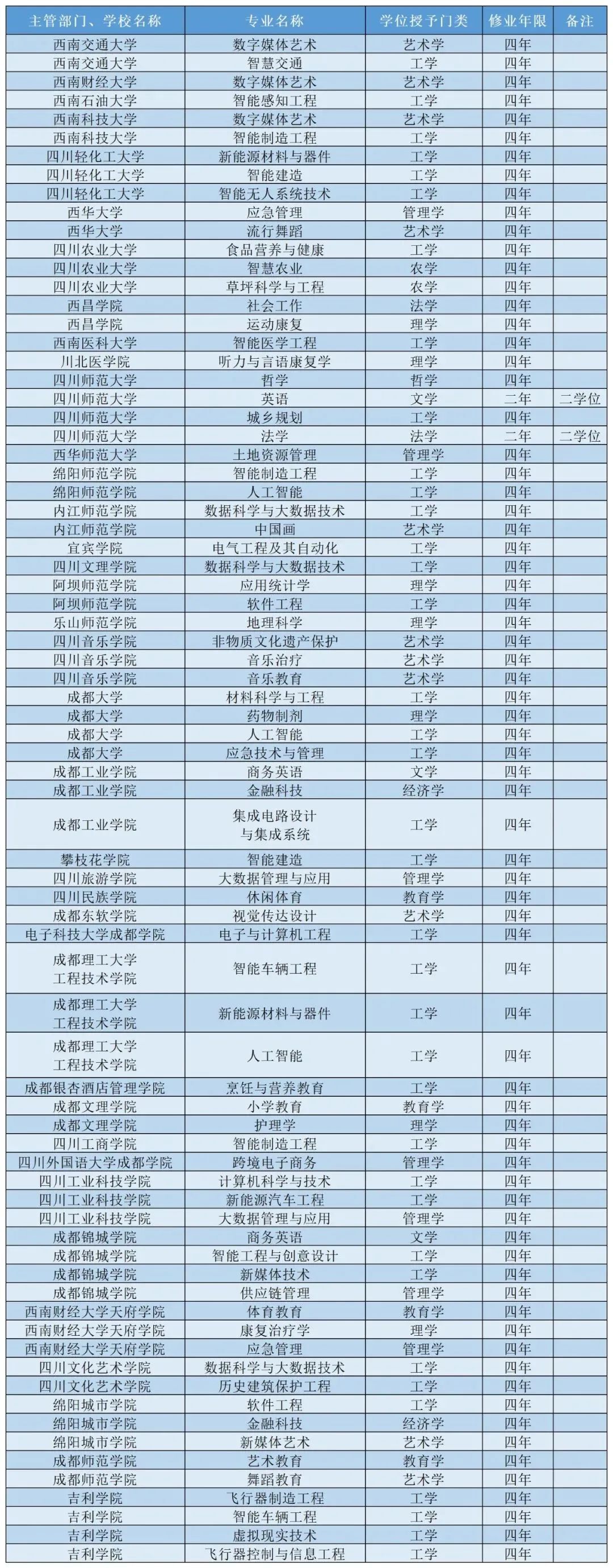 其实,在前期教育部公布2021年度普通高等学校本科专业备案和审批结果时,就有很多高校获评新增专业,如四川此次新增备案专业76个,详细名单如下!