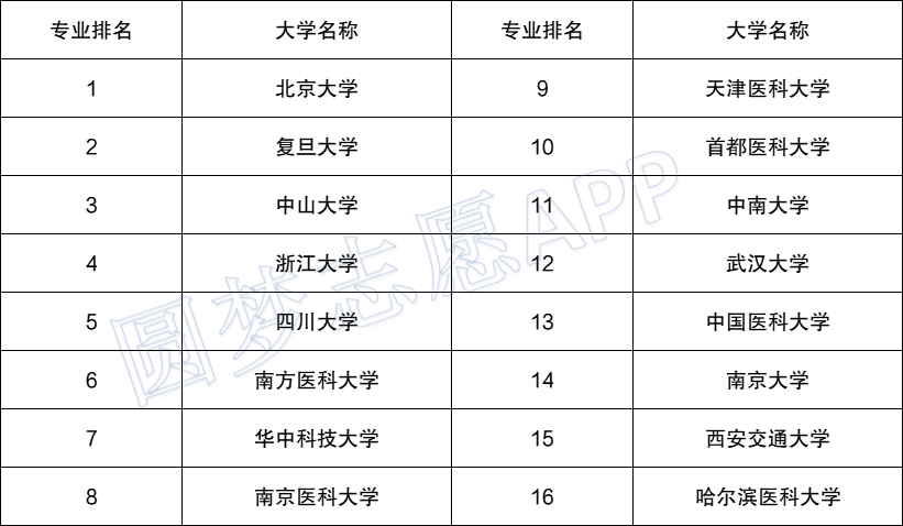1、基础医学16强(数据来源于软科)