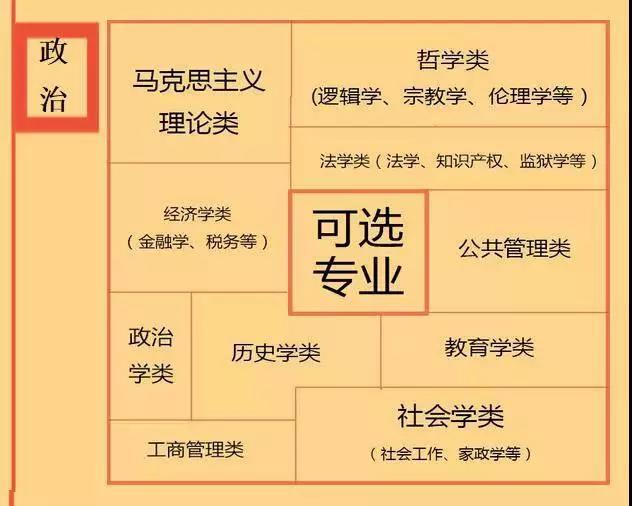 与政治对应的专业主要是指法学类。如法学、政治学与行政学、国际政治、外交学、思想政治教育等。