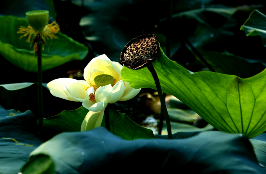 秋意渐深,荷花已残,池塘里的荷花仍在努力保留着最后一抹艳丽。枯黄的荷叶,零落的莲蓬,在秋日阳光的照射下,让荷花呈现出另一番美丽!