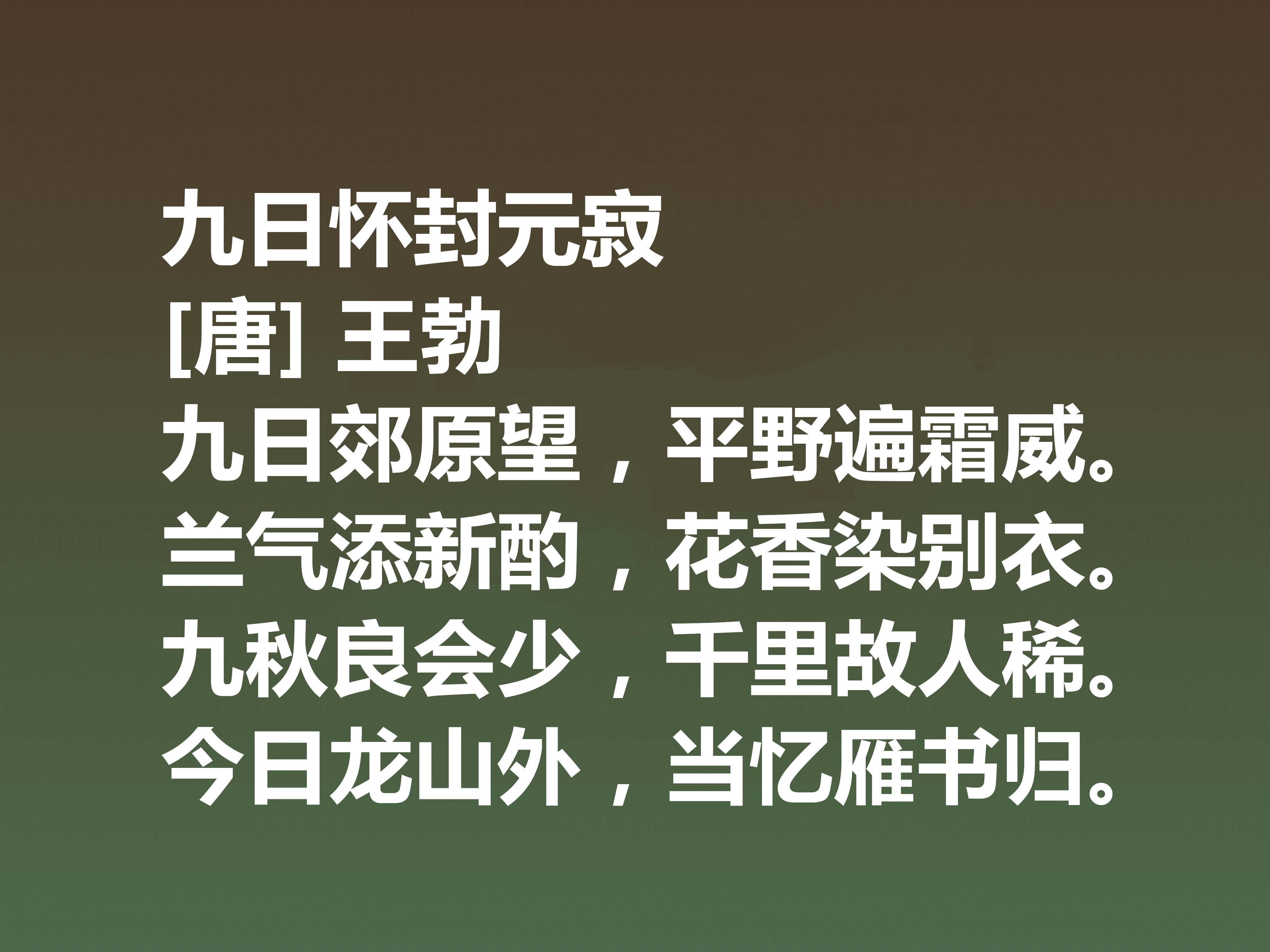 今日龙山外,当忆雁书归。
