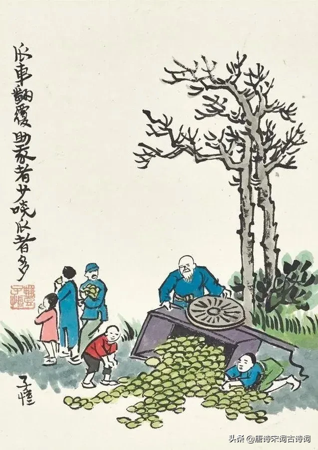 儿童篱落带斜阳,豆荚姜芽社肉香。
